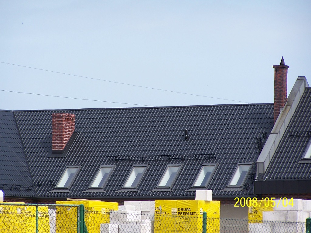 Dach wykonany z blachodachówki Ruukki – powierzchnia dachu 620 m2 Okna dachowe Velux. System rynnowy firmy Ruukki.